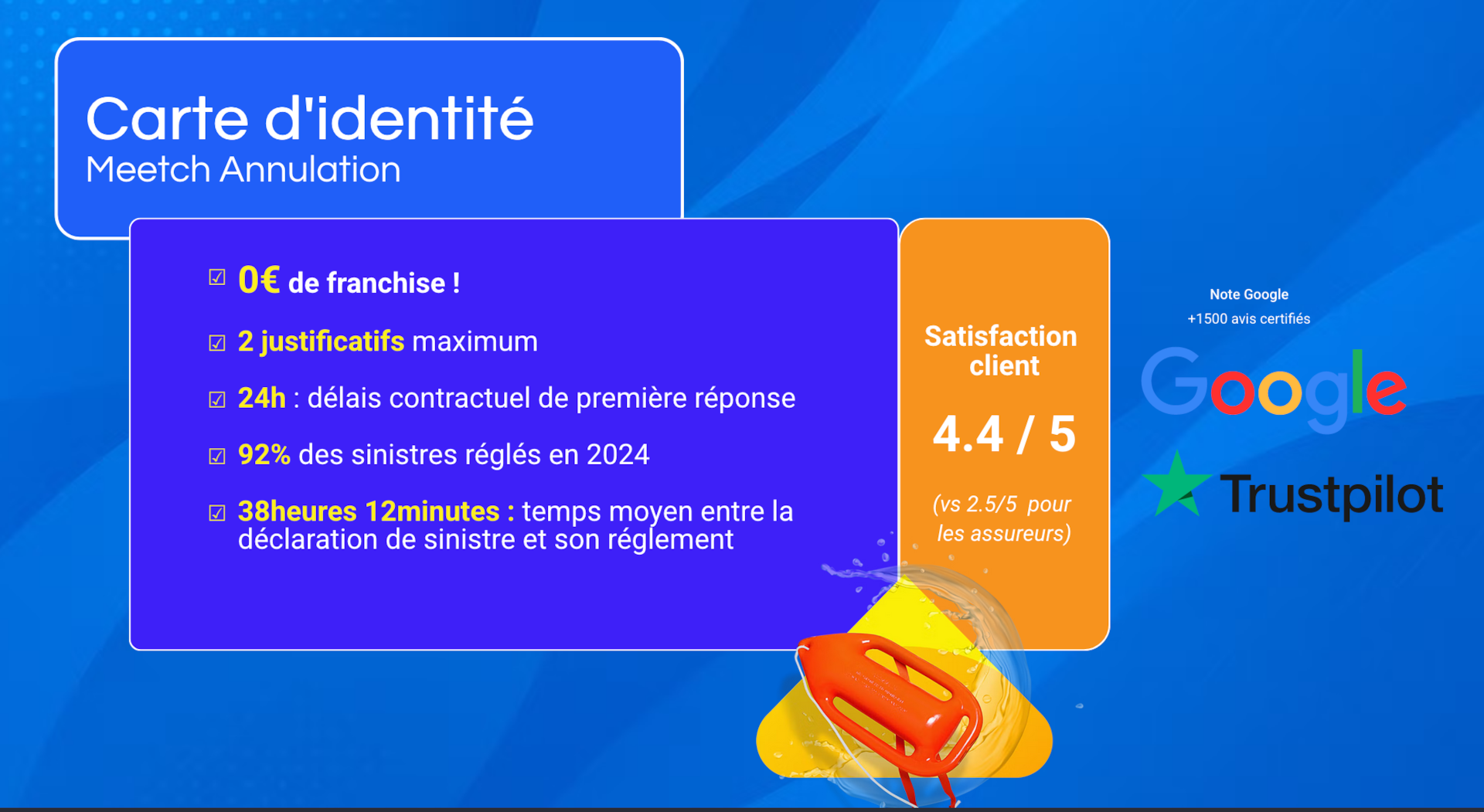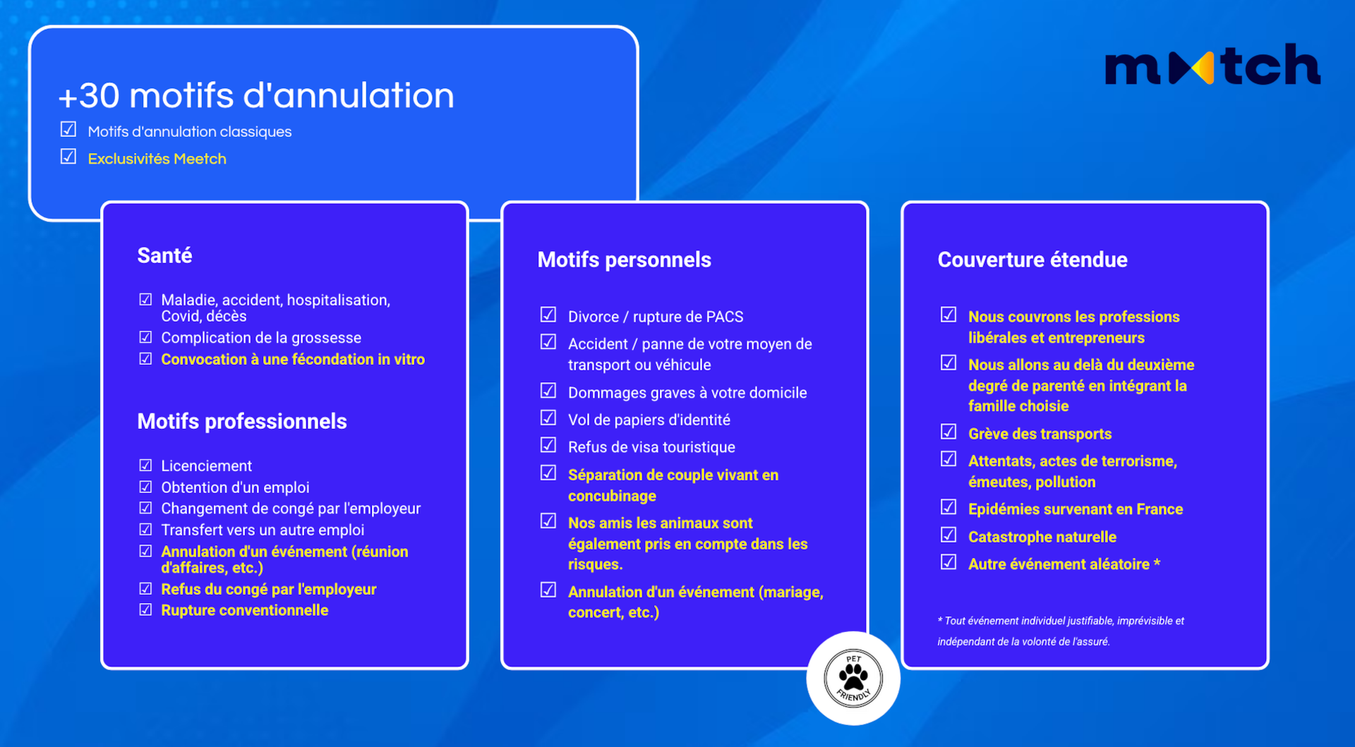 nous vous proposons cette assurance avec notre partenaire Meetch spécialiste de l'assurance annulation (concerts, spectacles, campings, hôtellerie, gîtes, agences de voyage...)